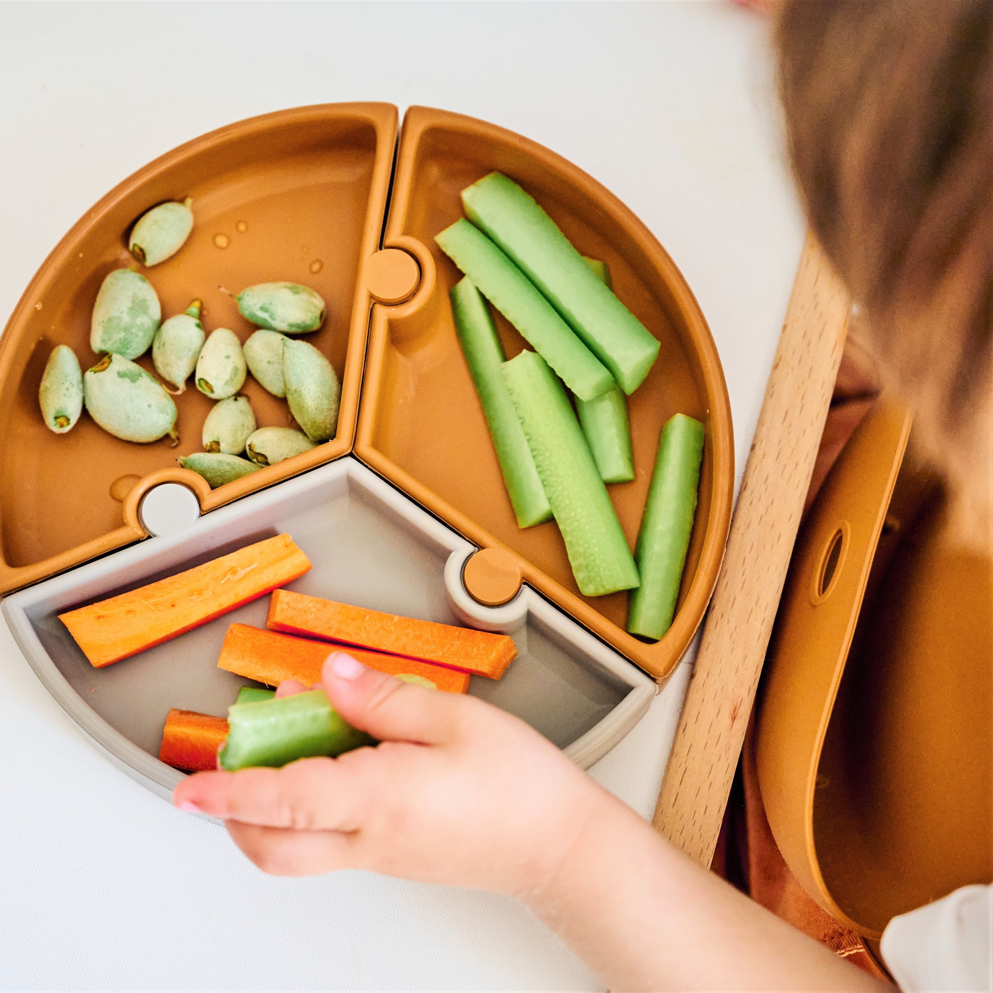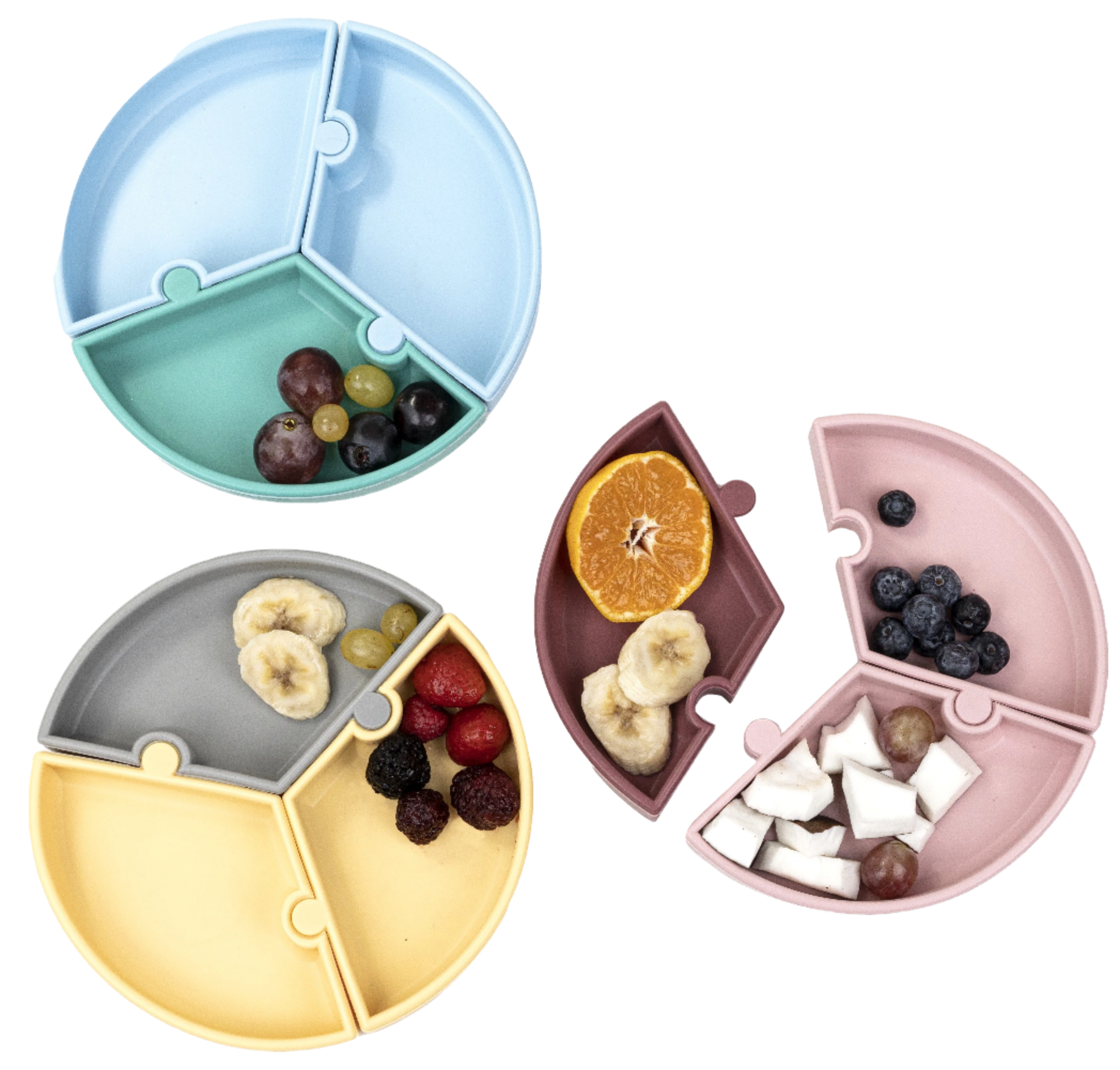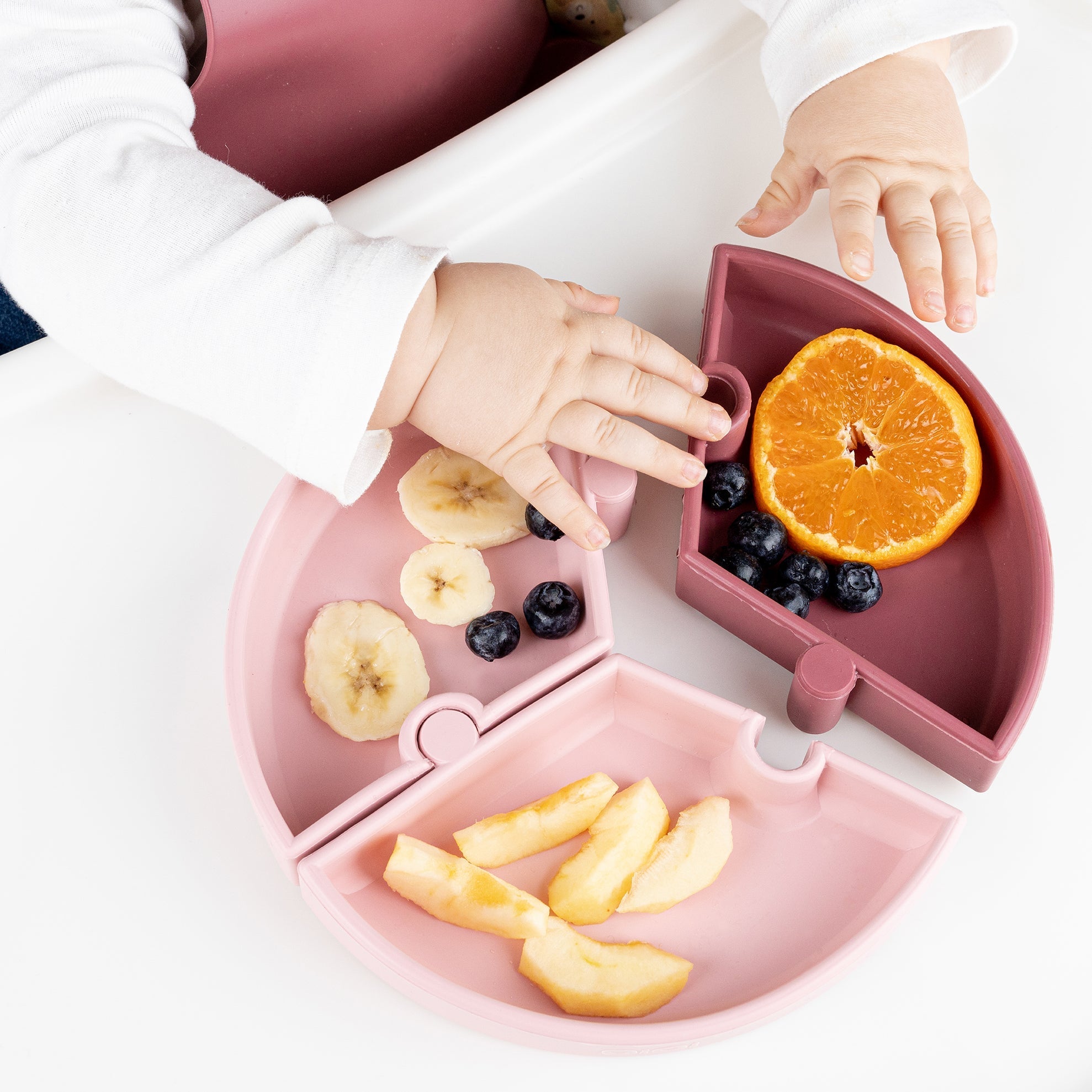 Made out of 100% food-grade silicone. Portable with 3 detachable sections. Triple suction base secures the plate stronger. It encourages BLW (baby led weaning) and supports independence. Helps with the development of fine motor skills. Healthy alternative to plastic.